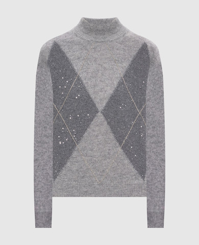 Сірий джемпер з вовни, шовку і кашеміру з паєтками