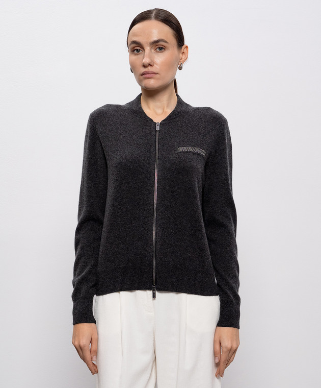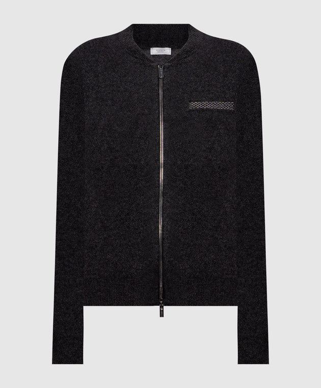 Сірий кардиган з вовни, шовку та кашеміру