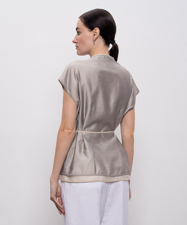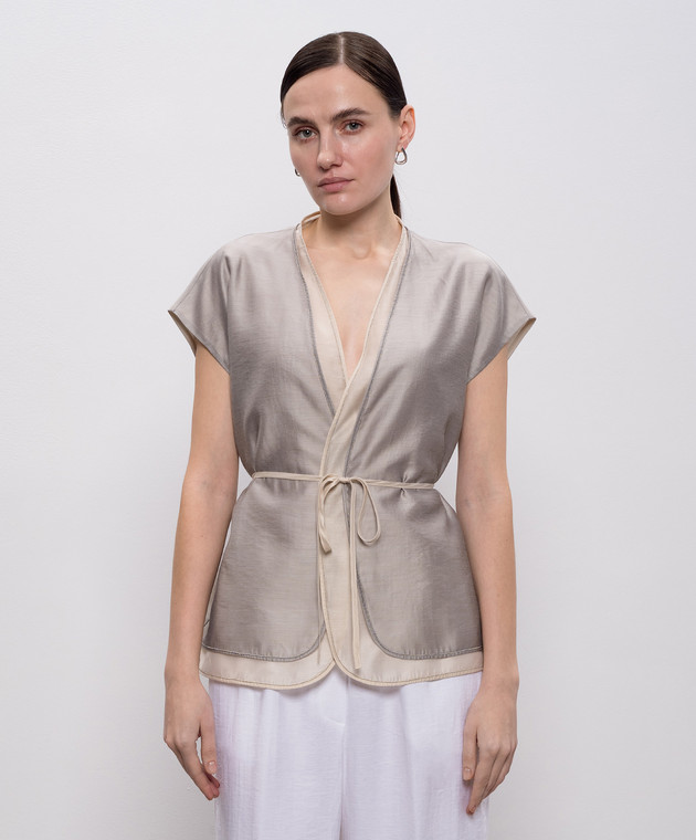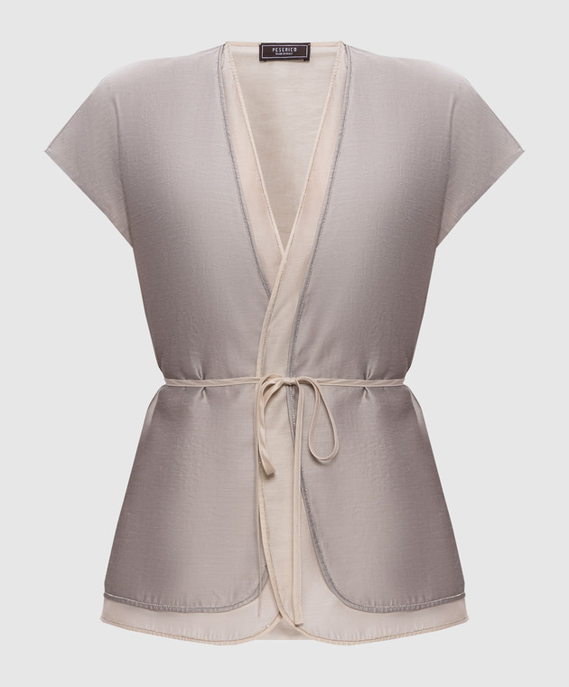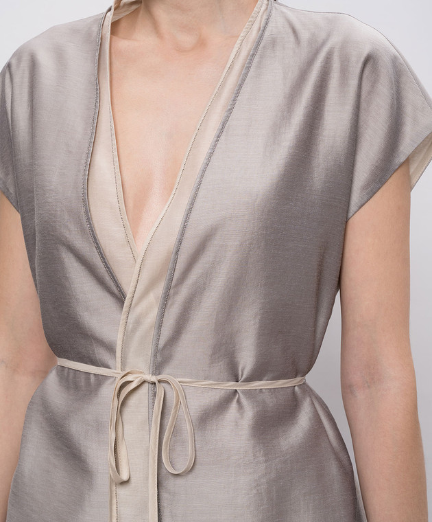 Сірий кардиган на запах з ланцюжком моніль