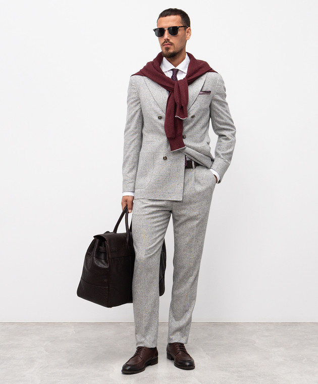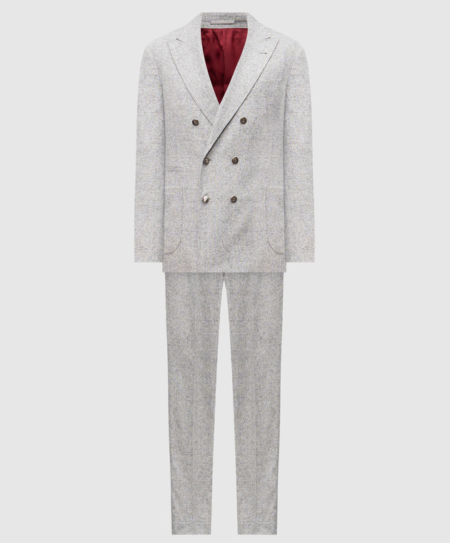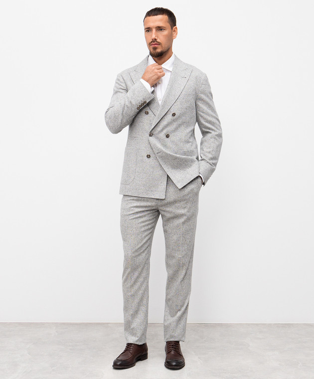 Сірий костюм з шовку, вовни та кашеміру в клітинку