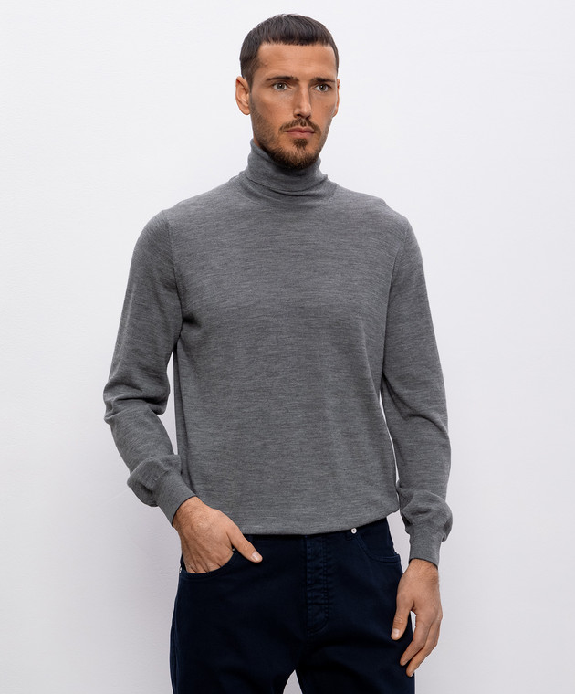 Brunello Cucinelli Сірий меланжевий гольф з вовни та кашеміру M2400103