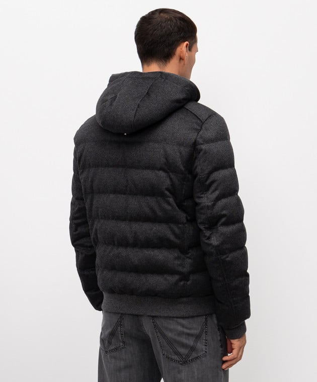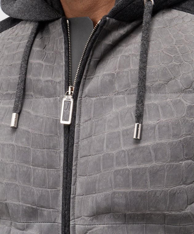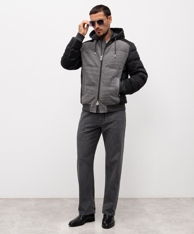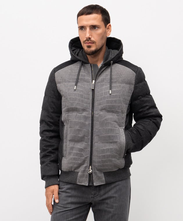 Сірий пуховик з кашеміру і шкіри крокодила