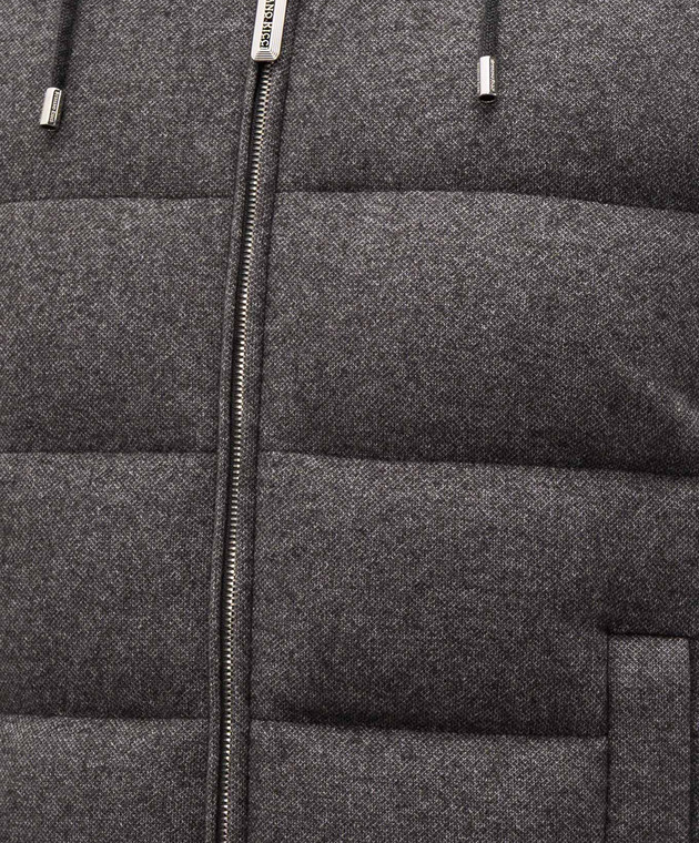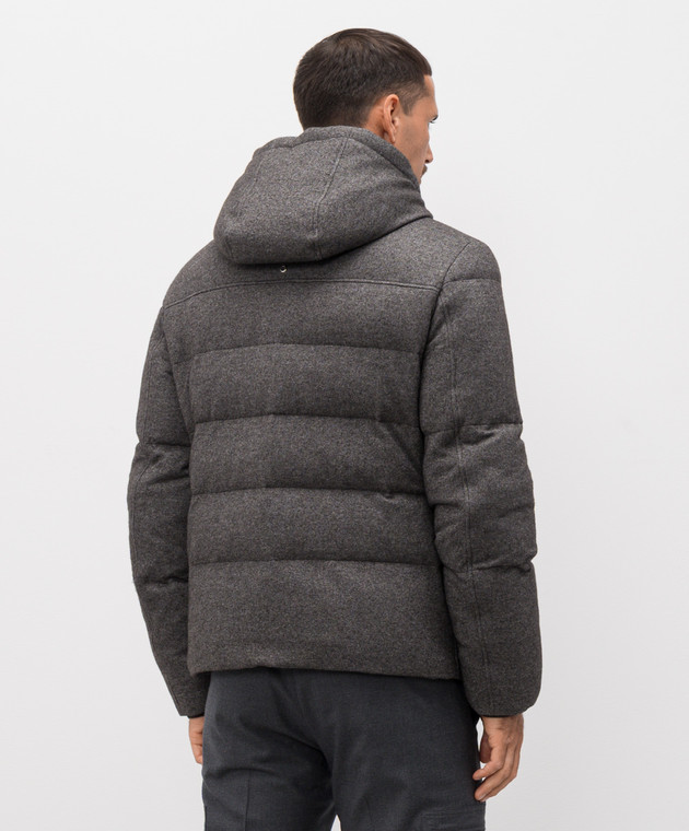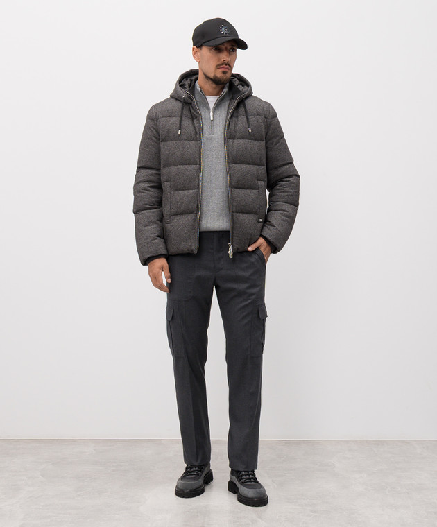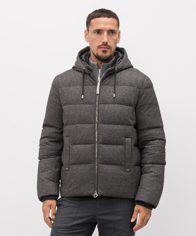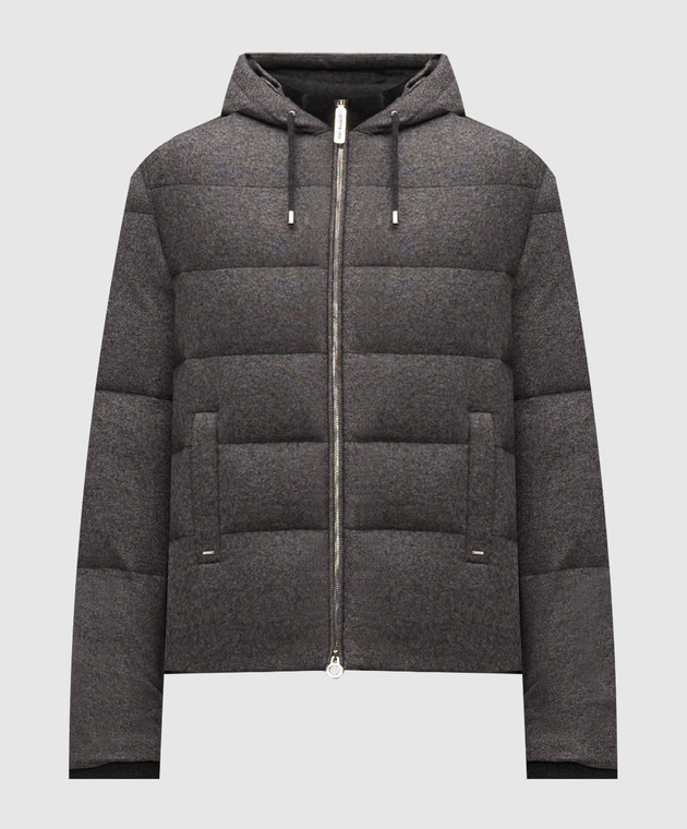 Сірий пуховик із шовку та кашеміру з монограмою