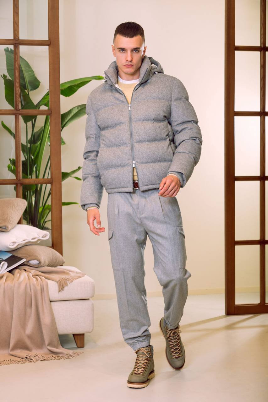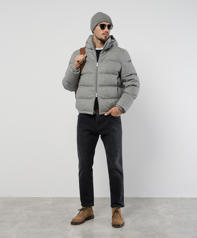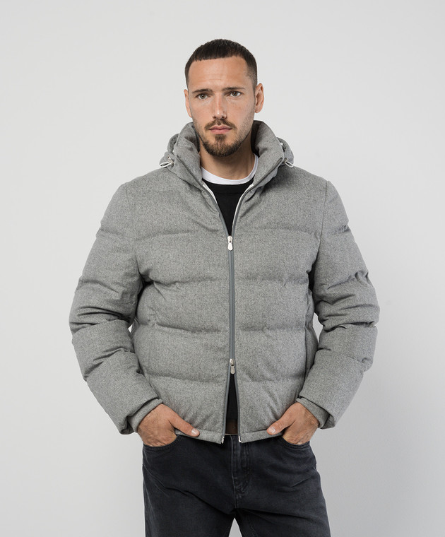 Сірий пуховик з вовни