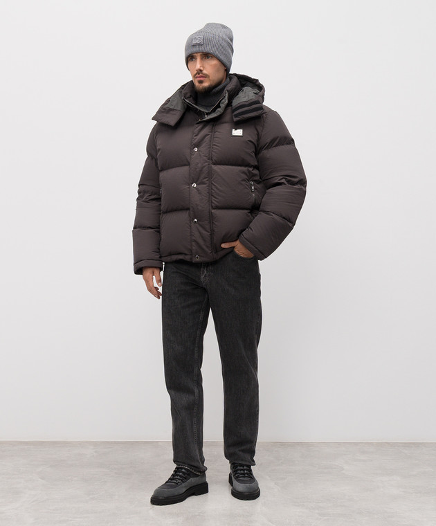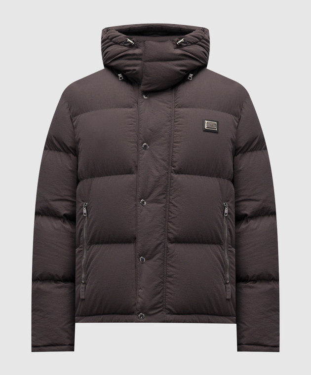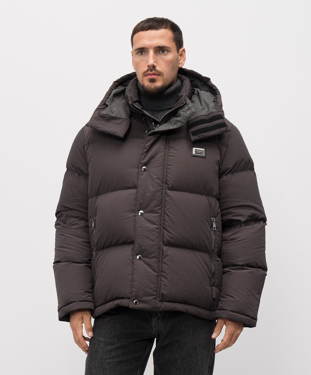 Сірий пуховик з логотипом