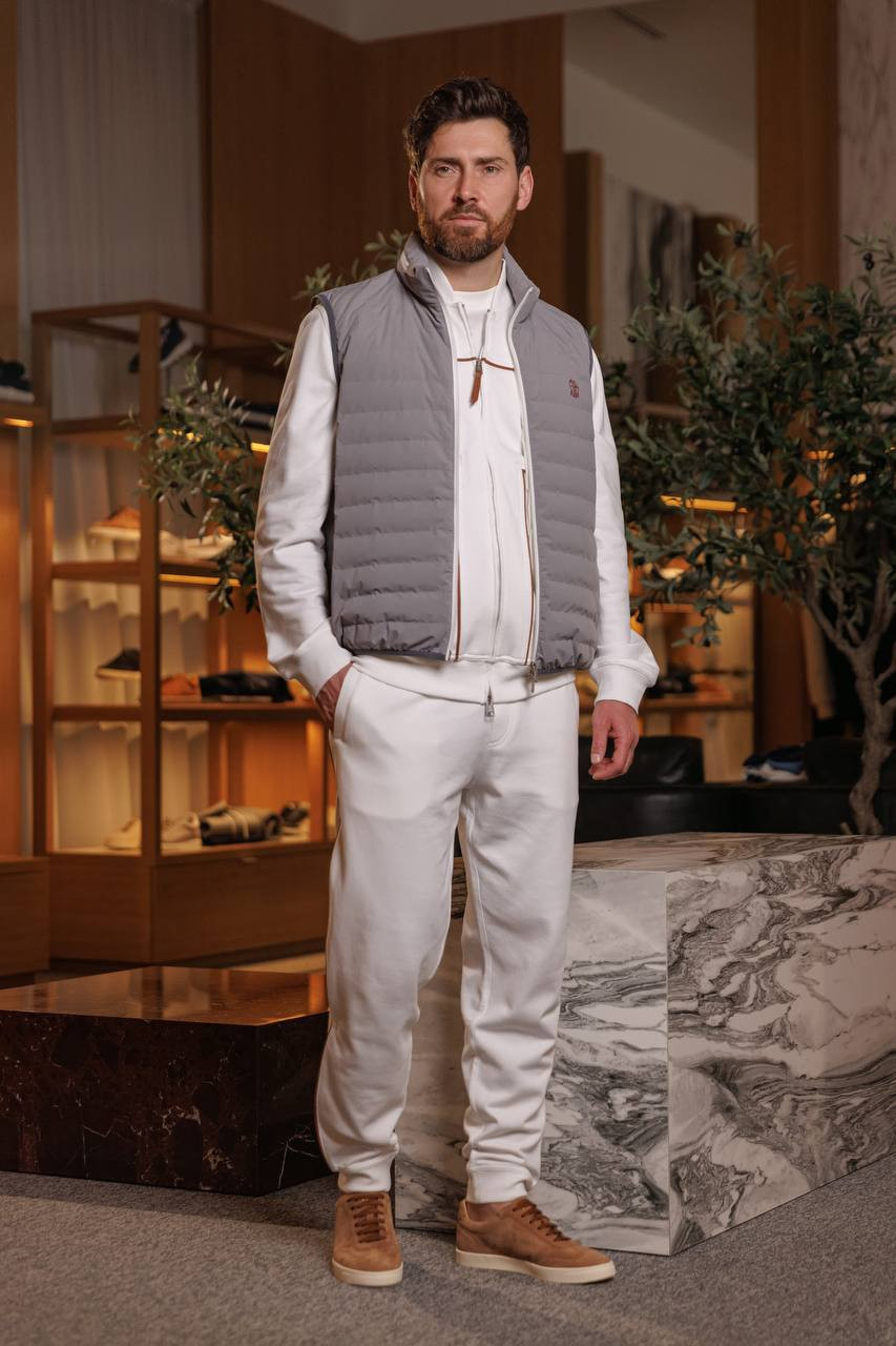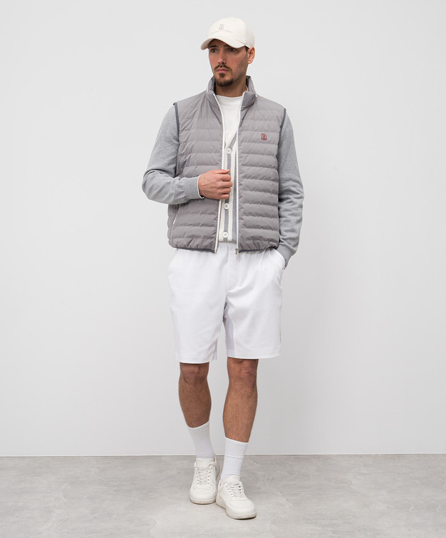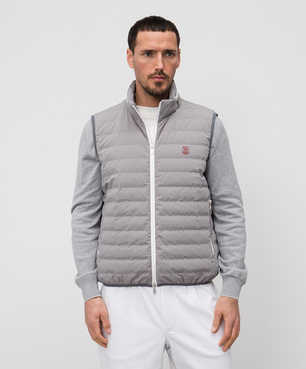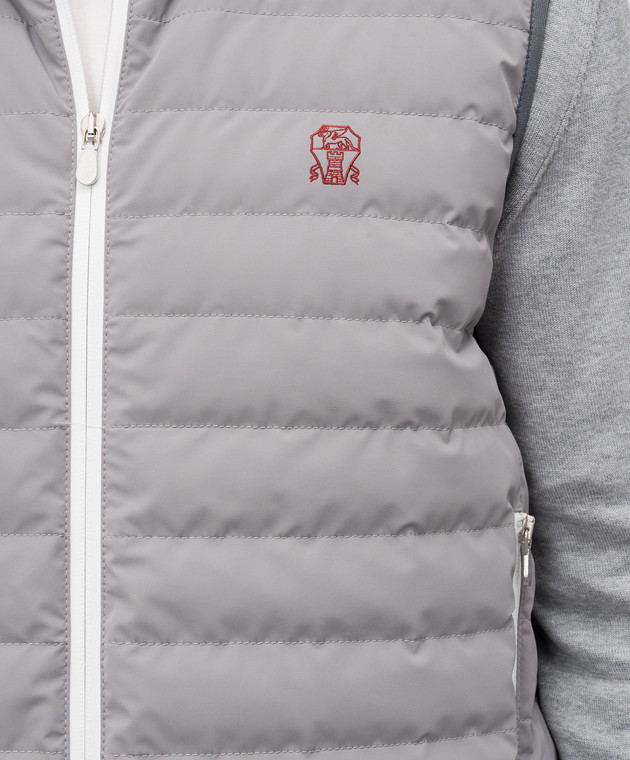 Сірий пуховий жилет з вишивкою емблеми логотипа