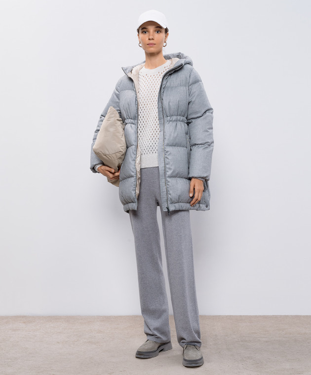 Сірий стьобаний пуховик з ланцюжком моніль