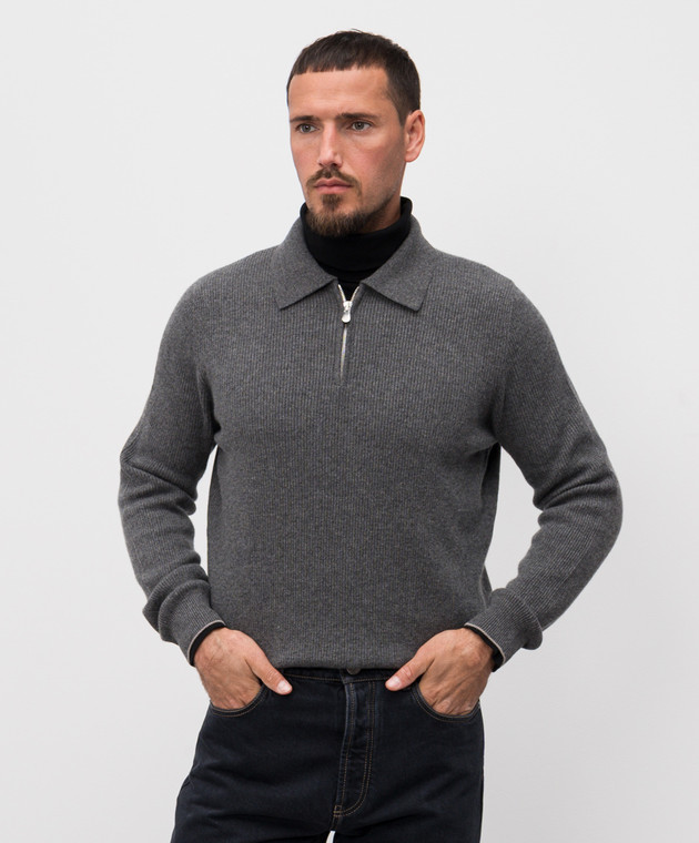 Сірий светр з кашеміру в рубчик