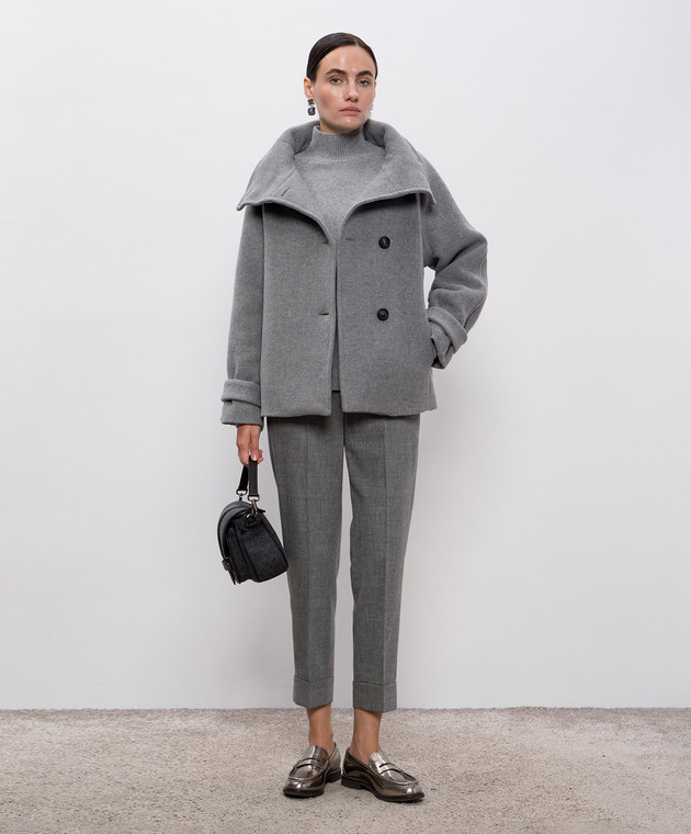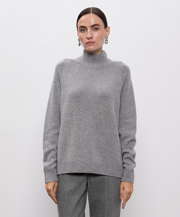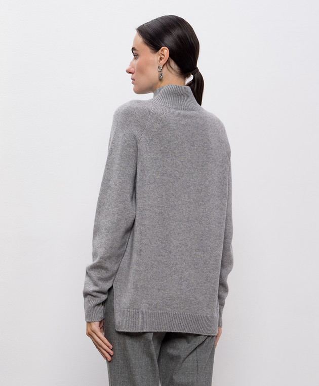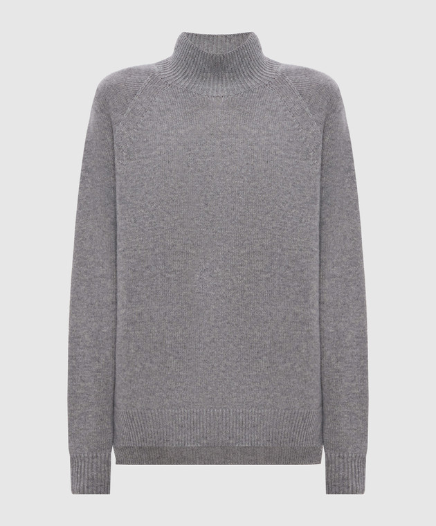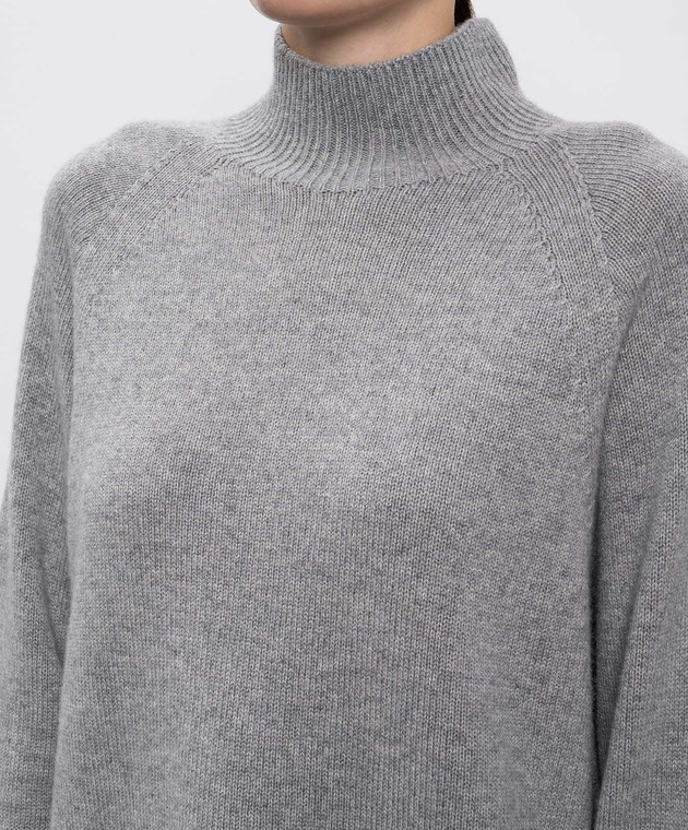 Сірий светр з вовни, шовку і кашеміру з розрізами