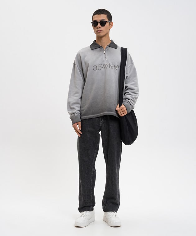 Сірий світшот-поло з принтом логотипа