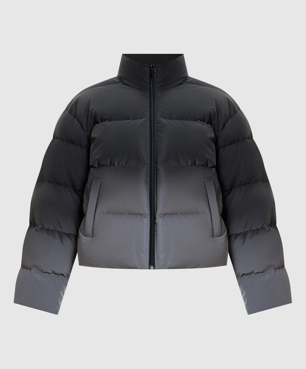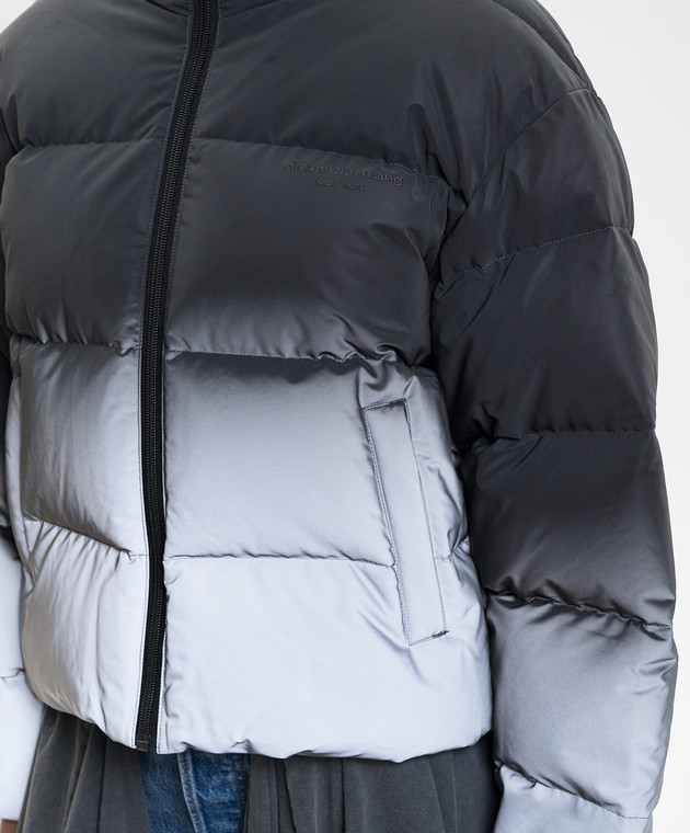 Сірий укорочений пуховик зі світловідбиваючим покриттям