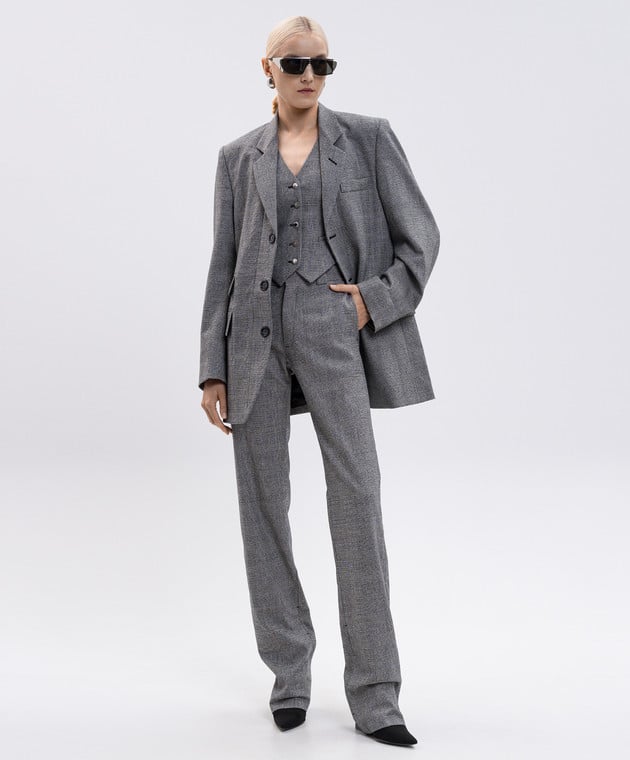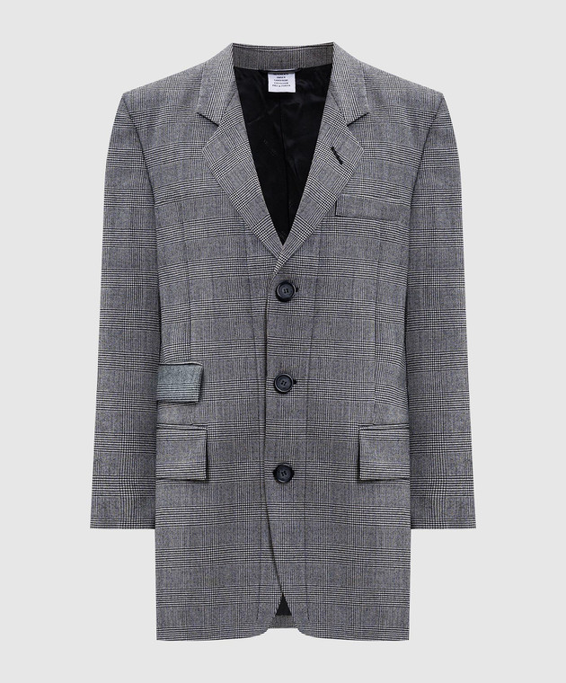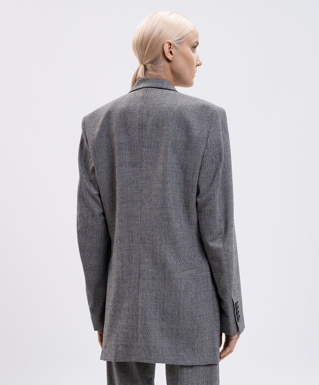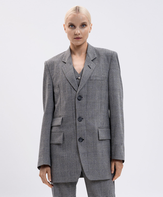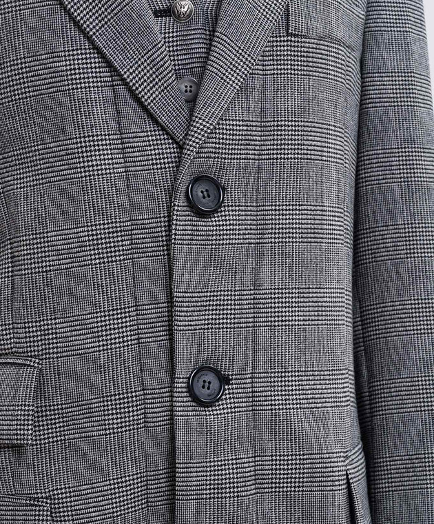 Сірий жакет з вовни в клітинку з нашивкою логотипа