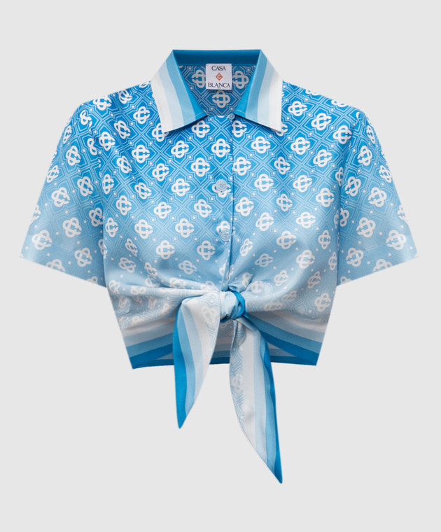 Синя блуза із шовку в принт