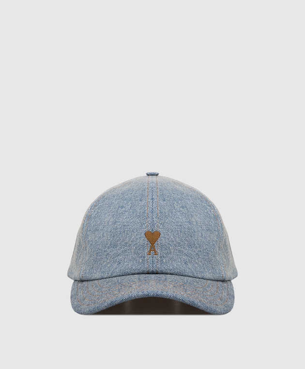 Синя джинсова кепка з вишивкою емблеми