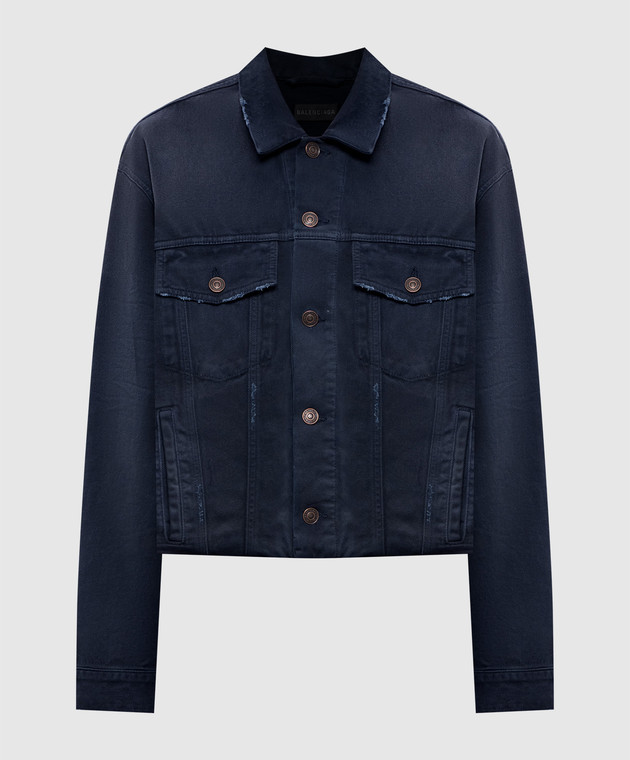 Синя джинсова куртка з ефектом потертості