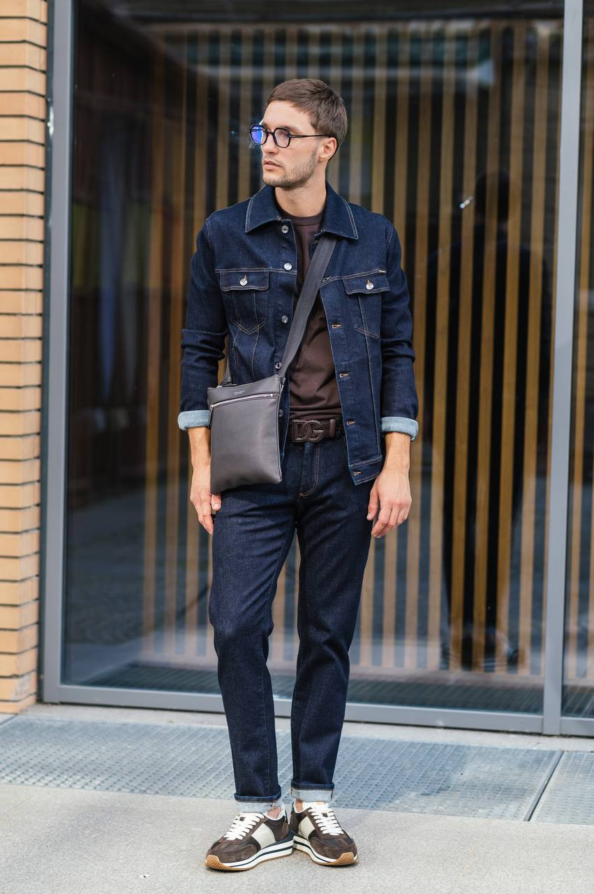 Синя джинсова куртка з нашивкою логотипа