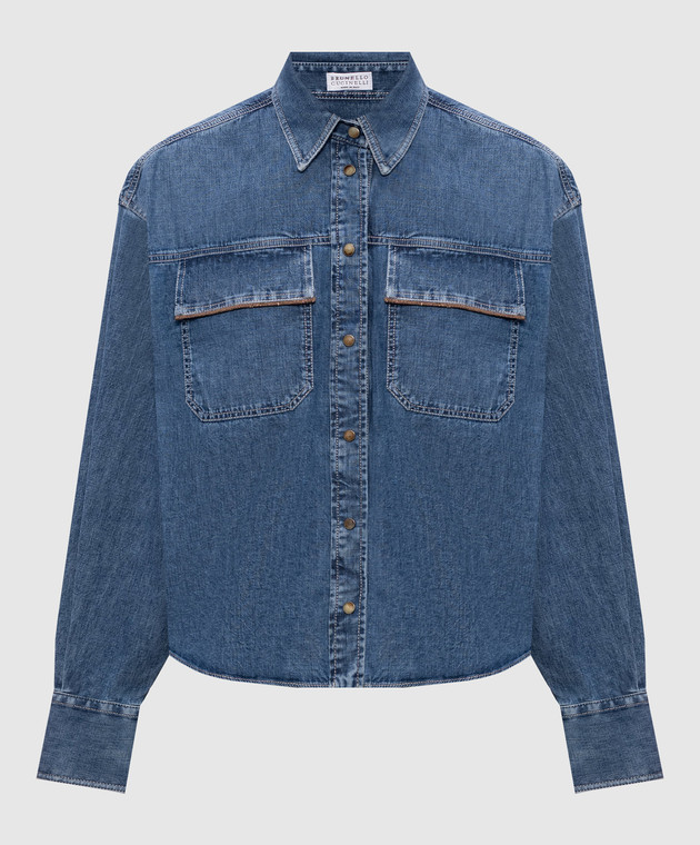 Синя джинсова сорочка з ланцюжком моніль