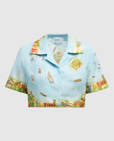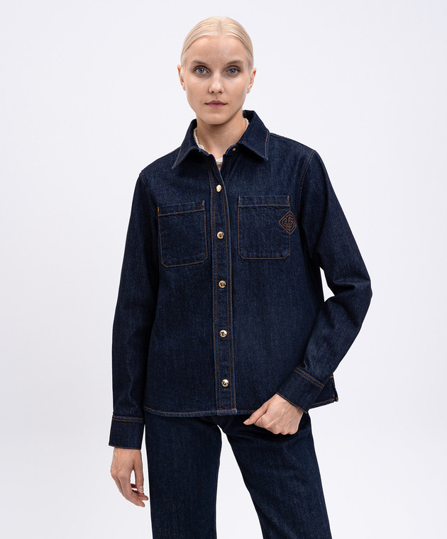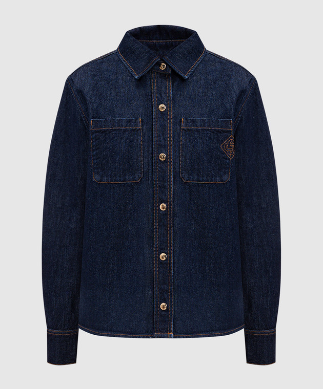 Синя джинсова сорочка з вишивкою емблеми логотипа