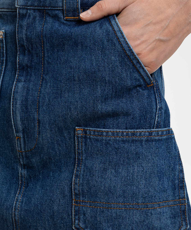 Синя джинсова спідниця-карго з вишивкою логотипа