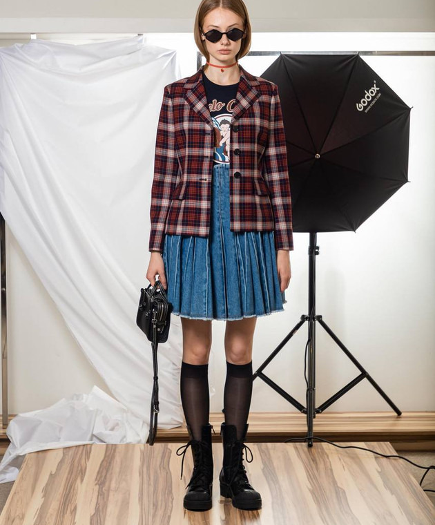 Синя джинсова спідниця з плісуванням