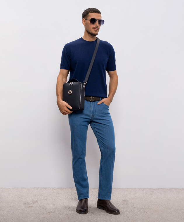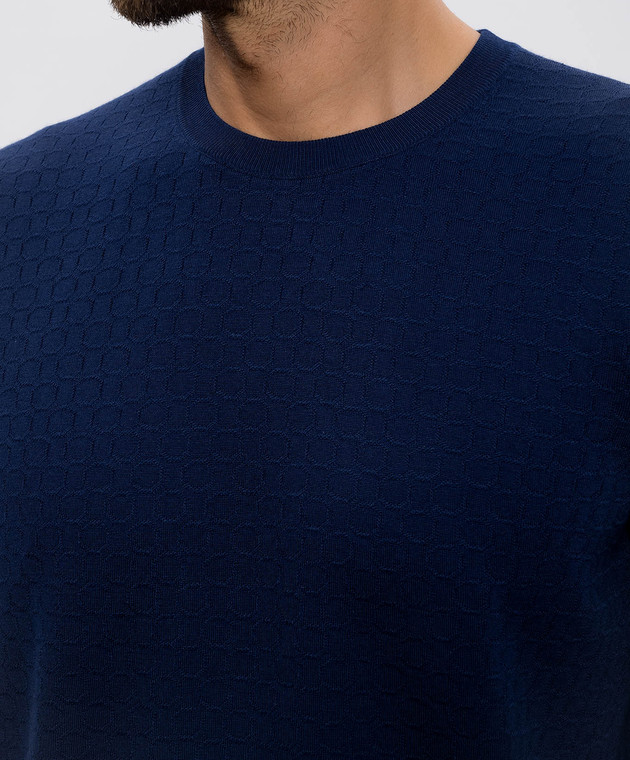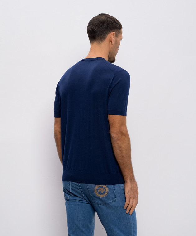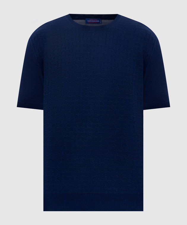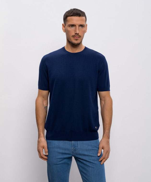Синя футболка з вовни, кашеміру та шовку у візерунок