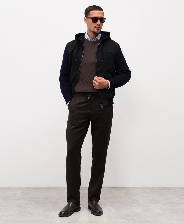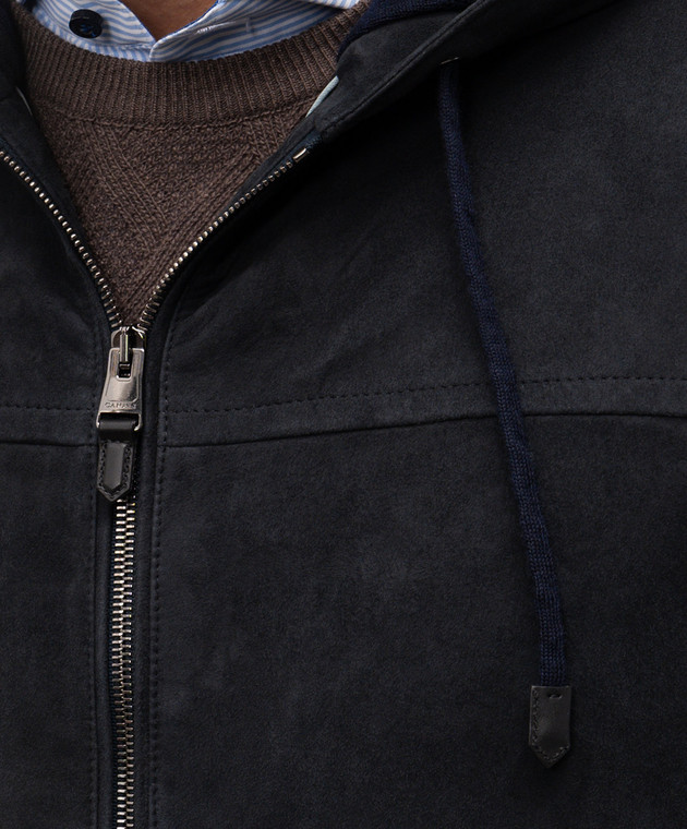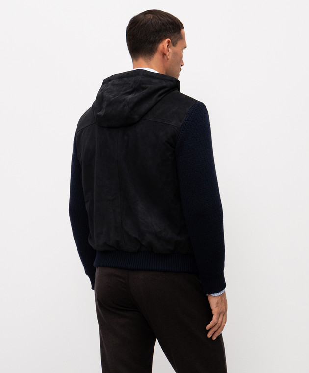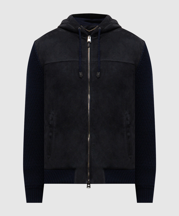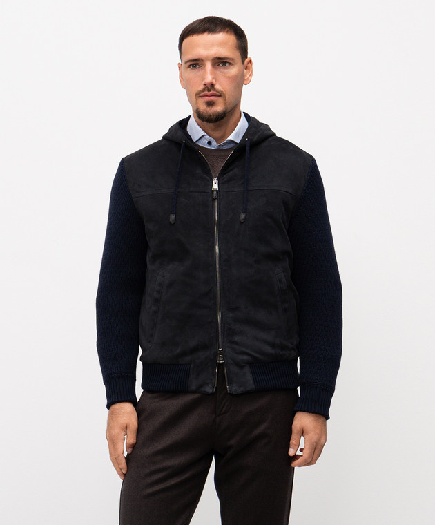 Синя комбінована куртка із замшею і вовною