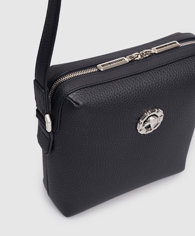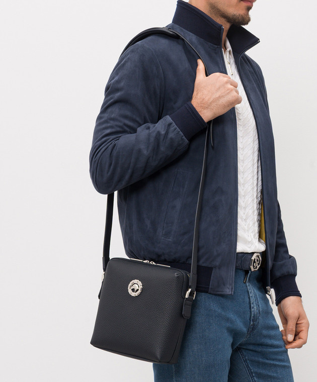 Синя шкіряна сумка з емблемою у вигляді голови орла