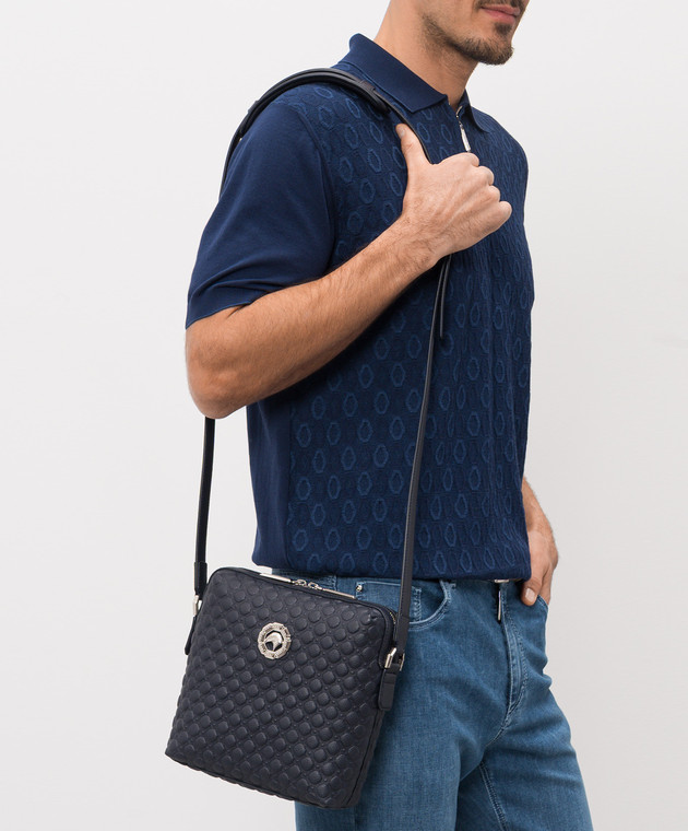 Синя шкіряна сумка з тисненням Asia