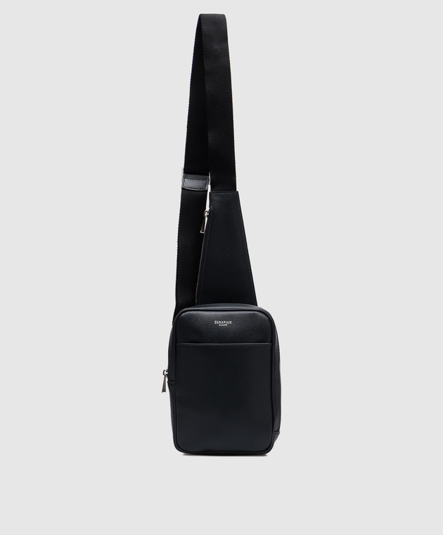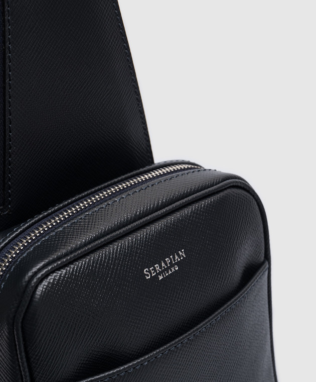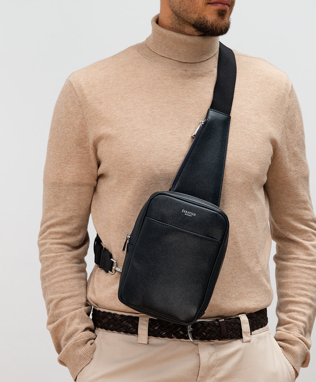 Синя шкіряна сумка-слінг EVOLUZIONE з логотипом