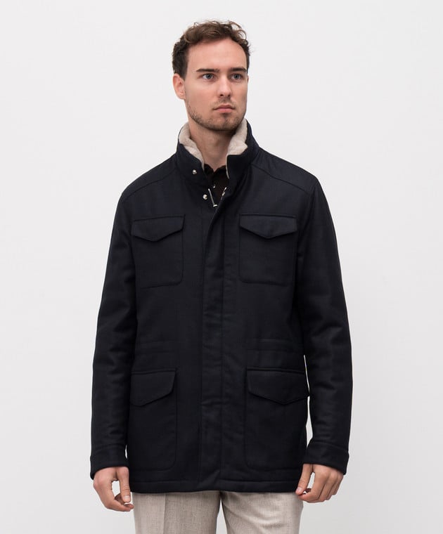 Синя куртка з вовни і кашеміру