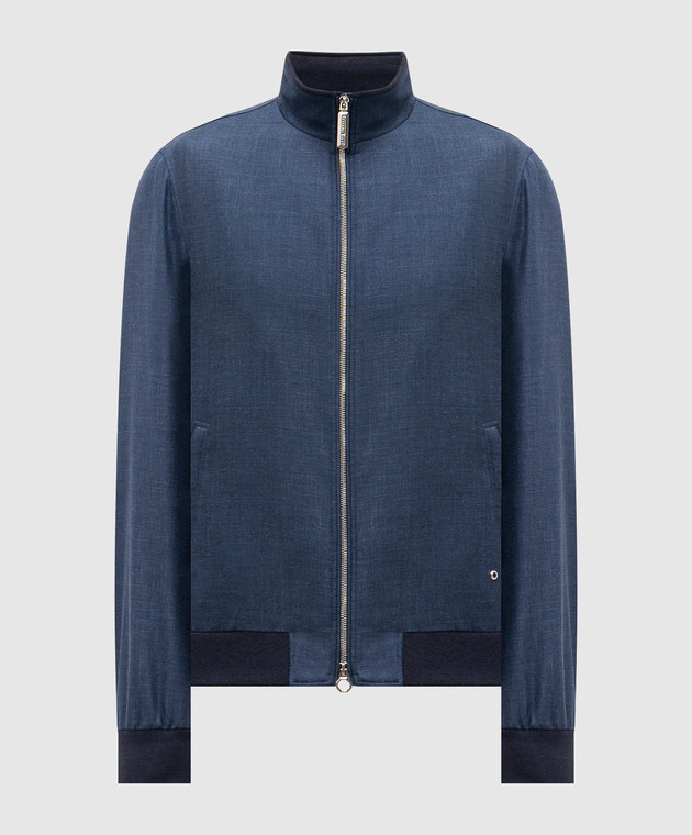 Синя куртка з вовни, шовку та льону