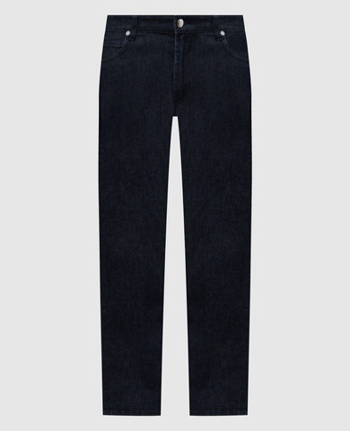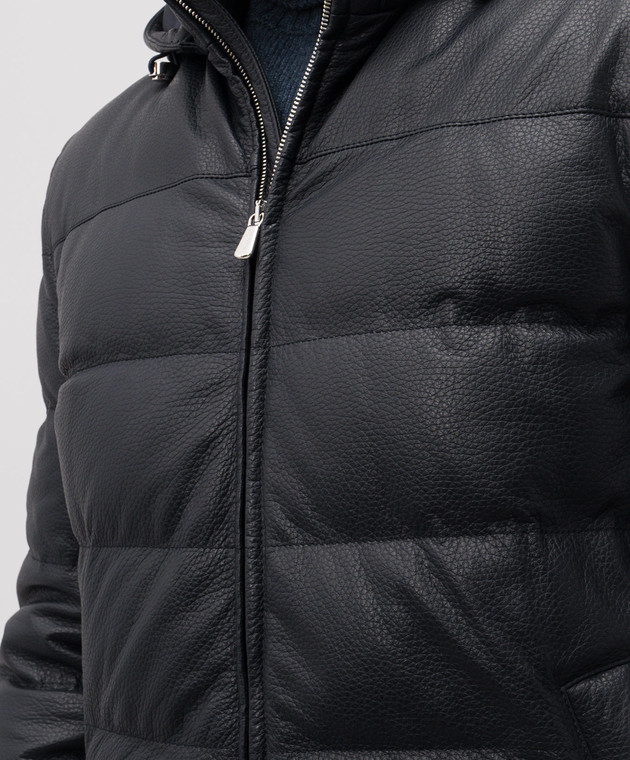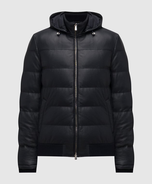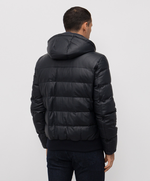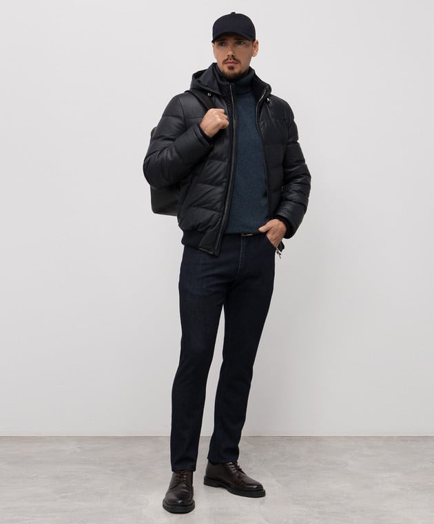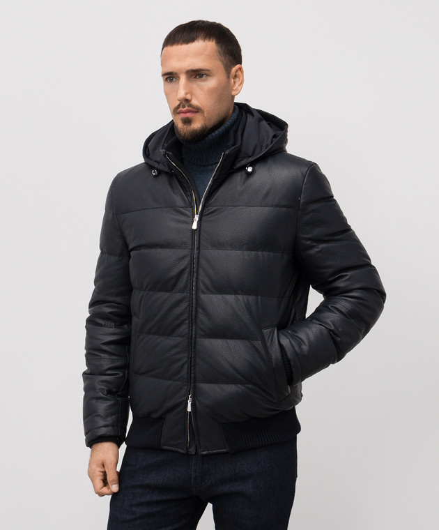 Синя пухова куртка зі шкіри оленя