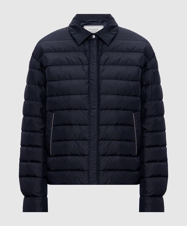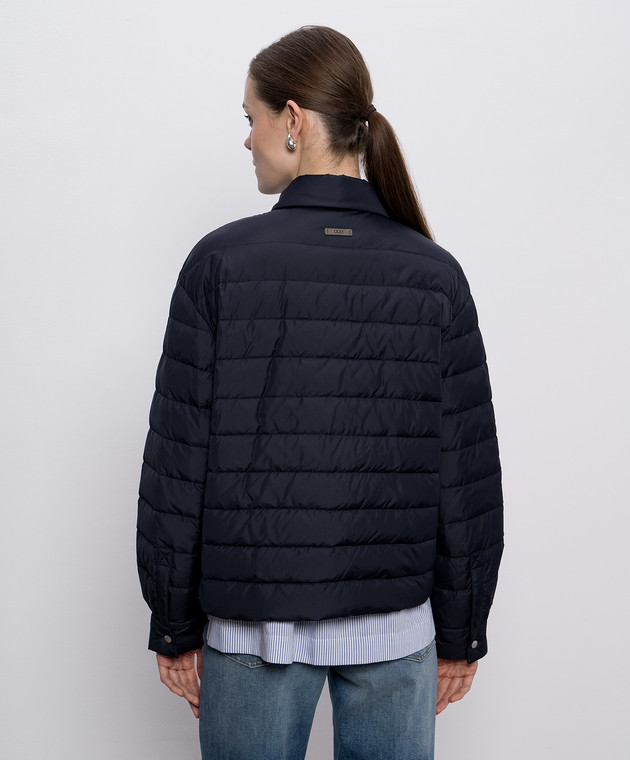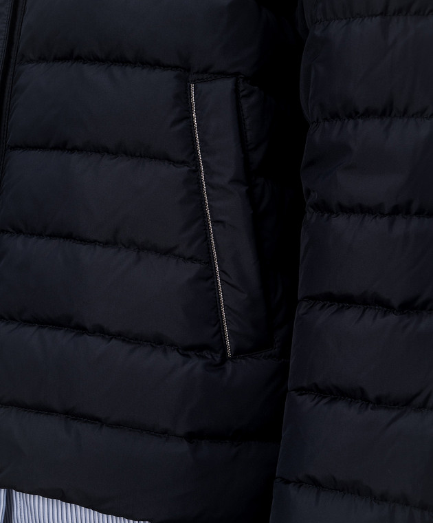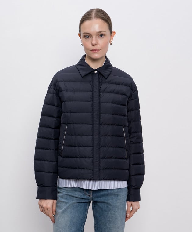Синя пухова куртка з ланцюжком моніль