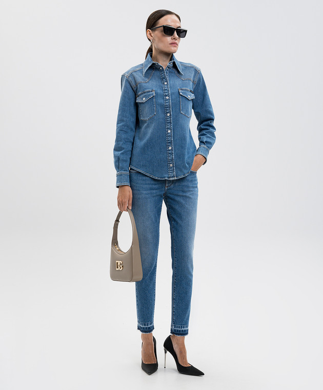 • Декор ефект потертості, нашивка логотипа, металева пластина з логотипом Dolce&Gabbana, фігурний низ