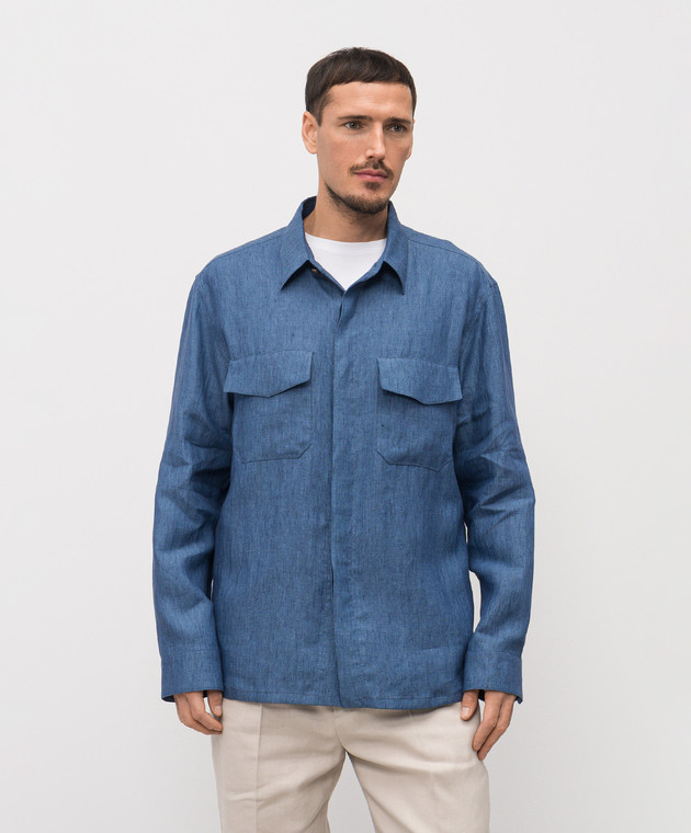 Синя сорочка з льону