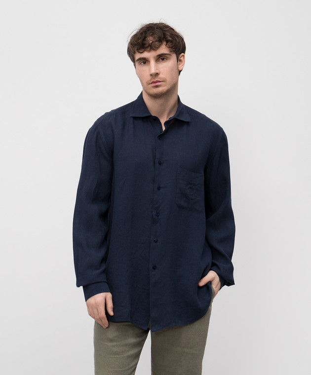 Синя сорочка з льону