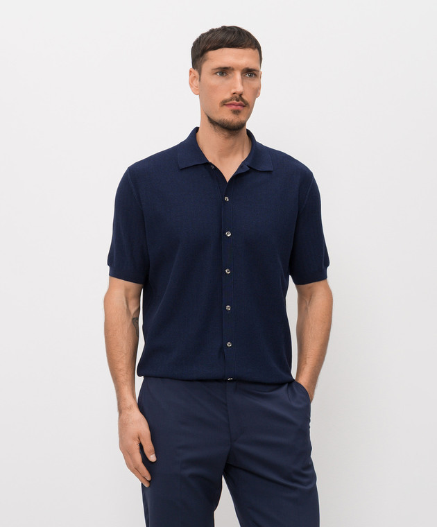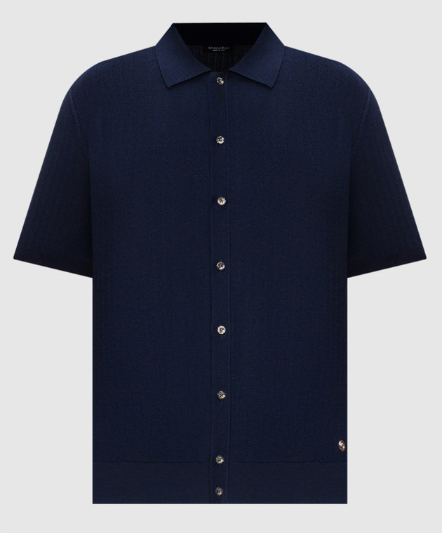 Синя сорочка з короткими рукавами з шовком