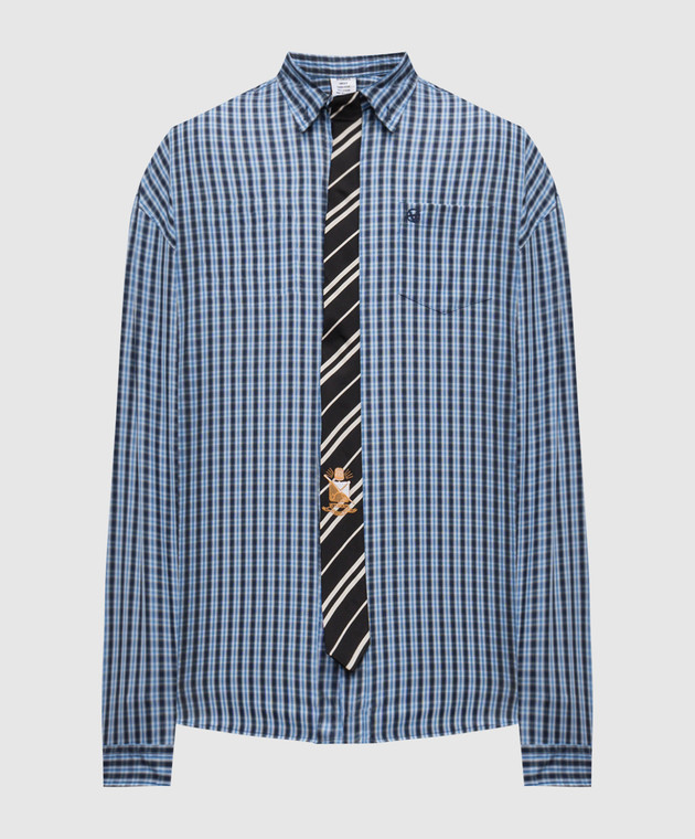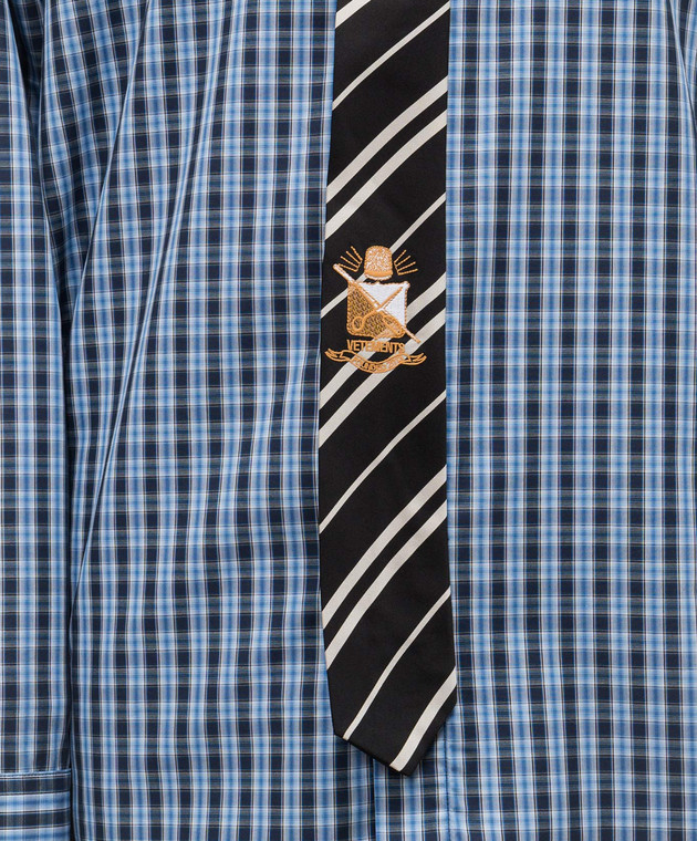 • Декор візерунок клітинка, аплікація у вигляді краватки з вишивкою логотипа, асиметричний фігурний низ
