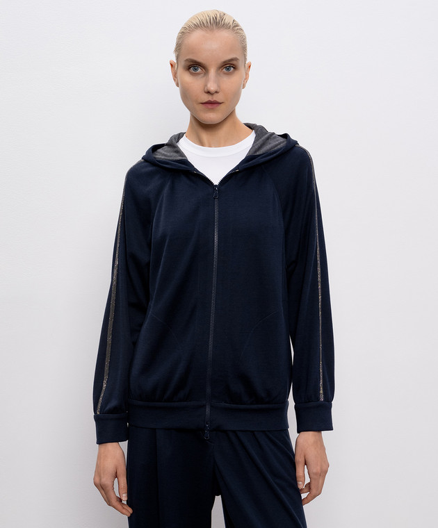 Синя спортивна куртка з шовком з ланцюжком моніль