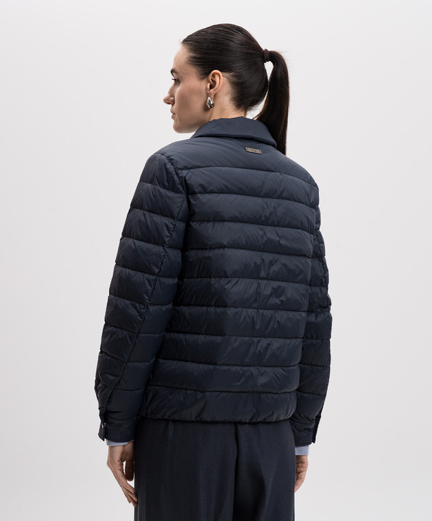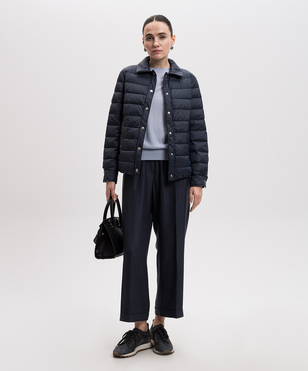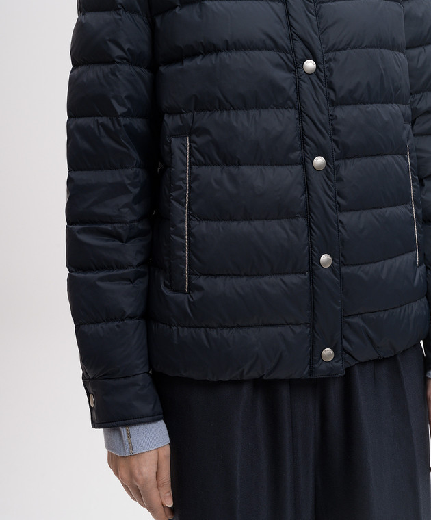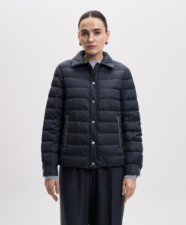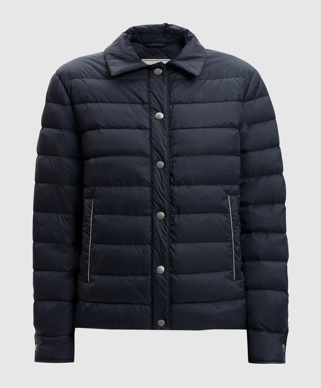 Синя стьобана пухова куртка з ланцюжком моніль