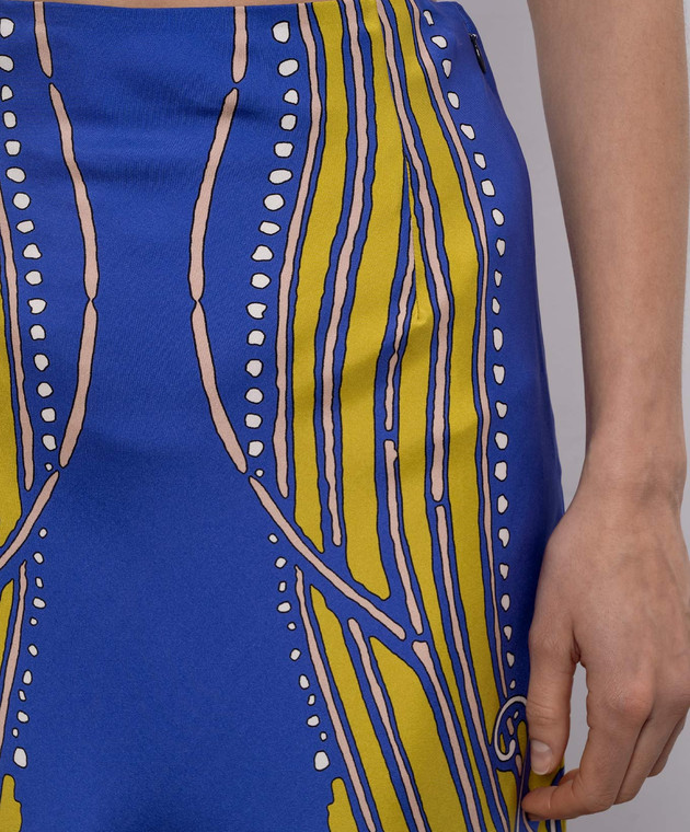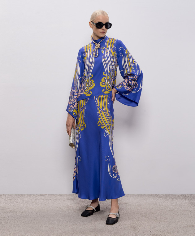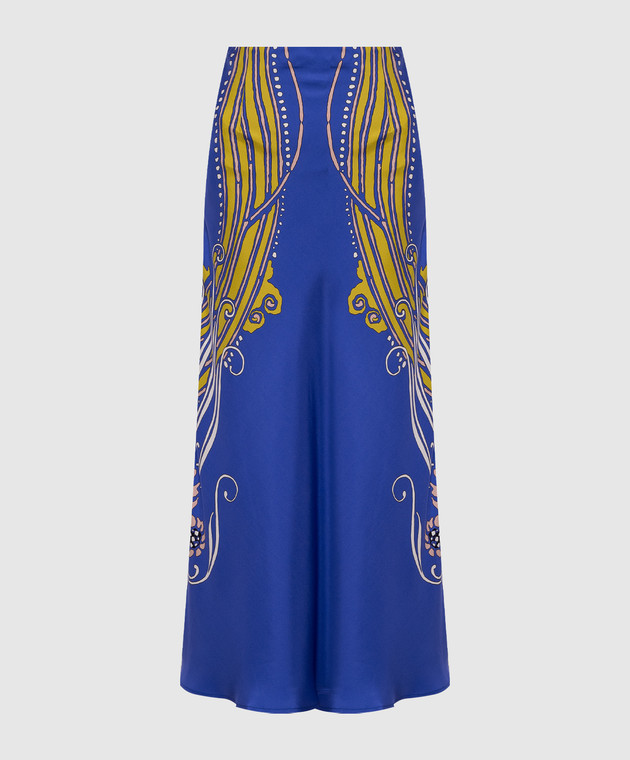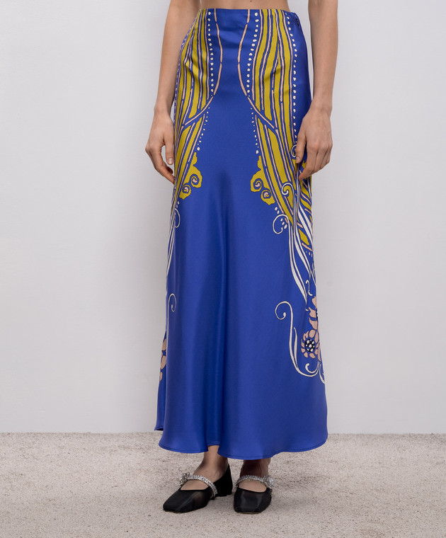 Синя спідниця максі із шовку в принт