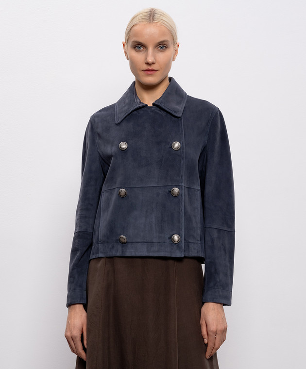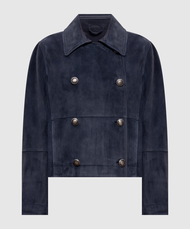 Синя замшева двобортна куртка