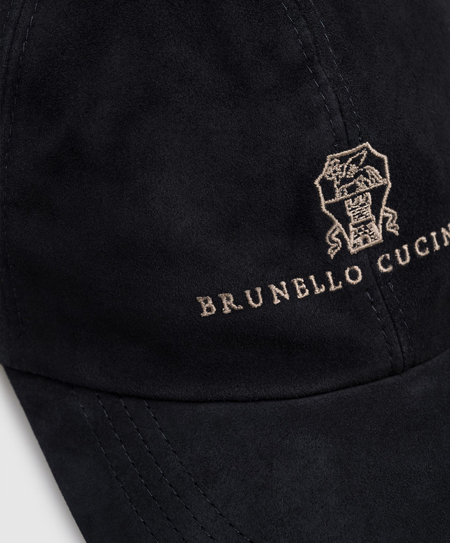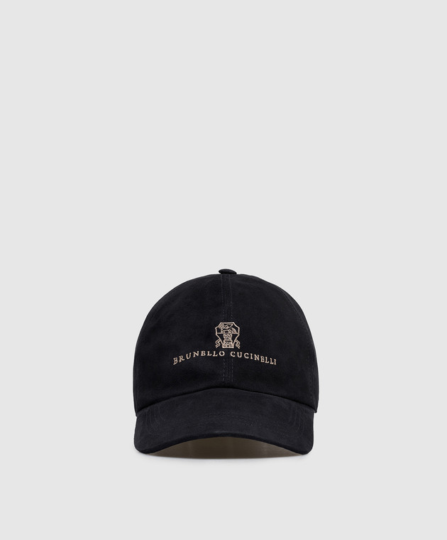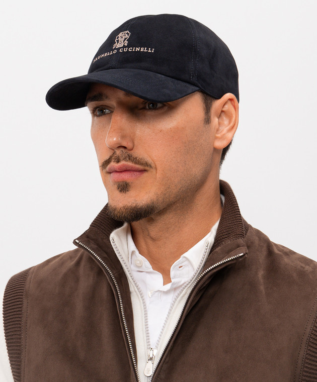 Синя замшева кепка з вишивкою логотипа