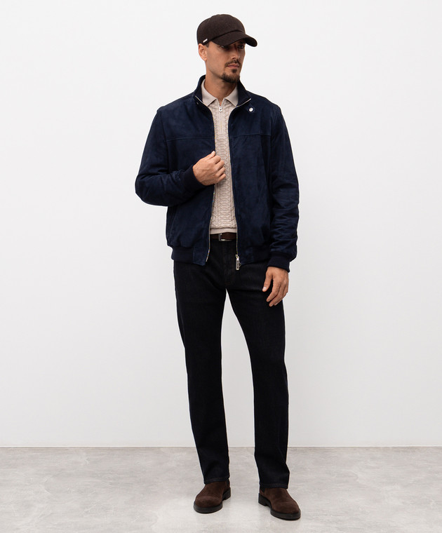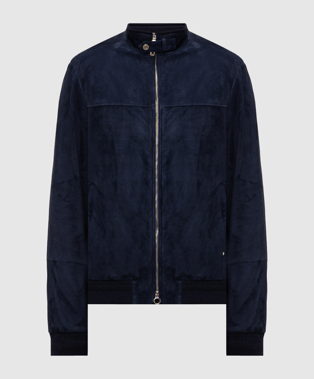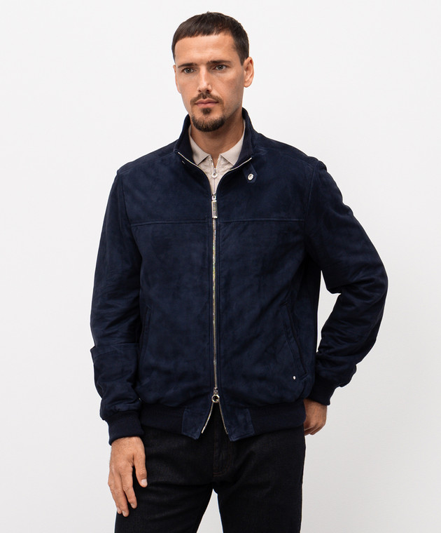 Синя замшева куртка з монограмою логотипа