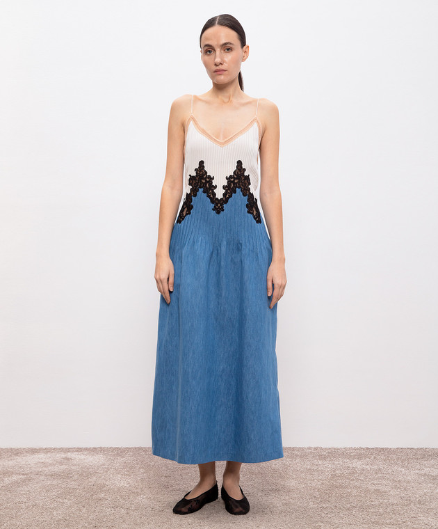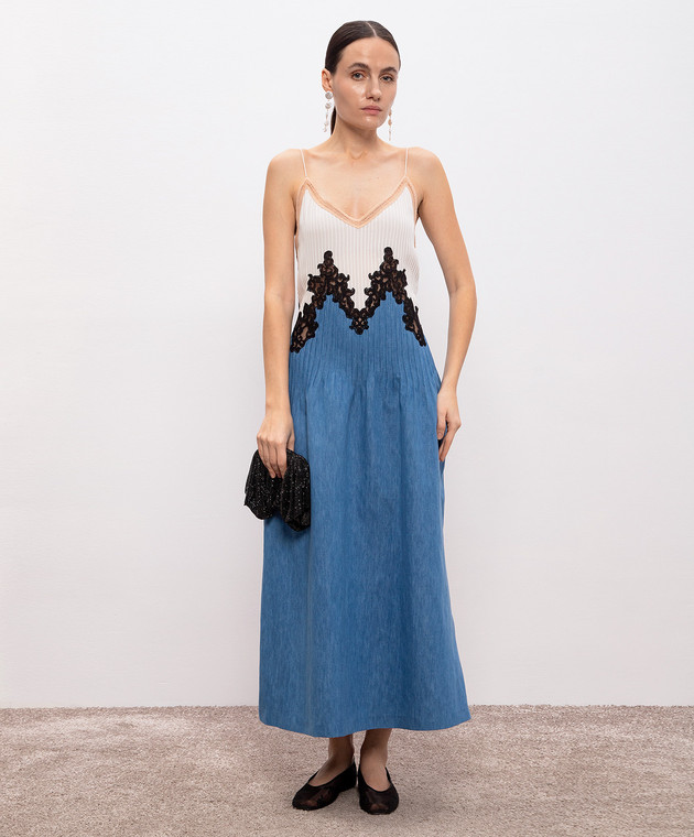 Синя комбінована сукня Althea Lace з льоном та шовком