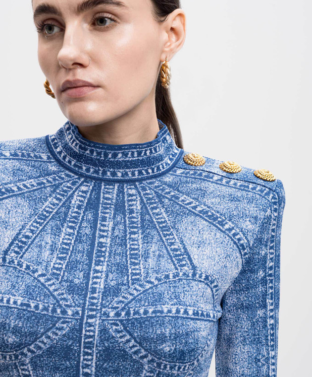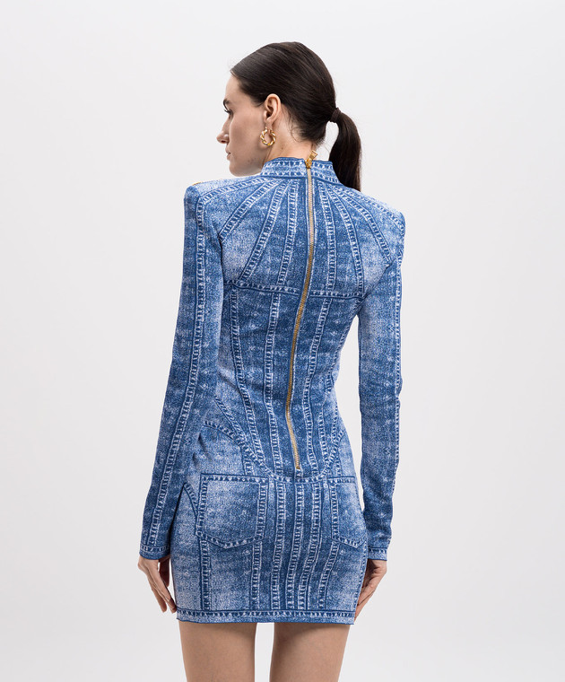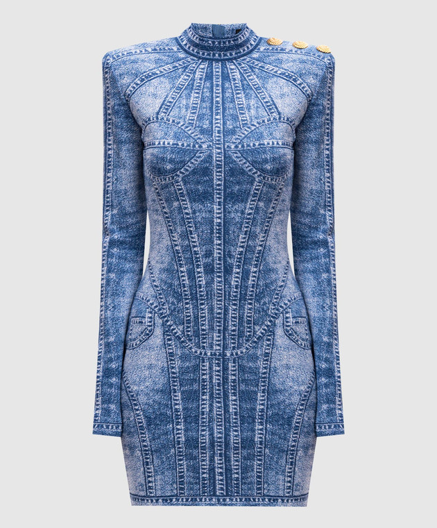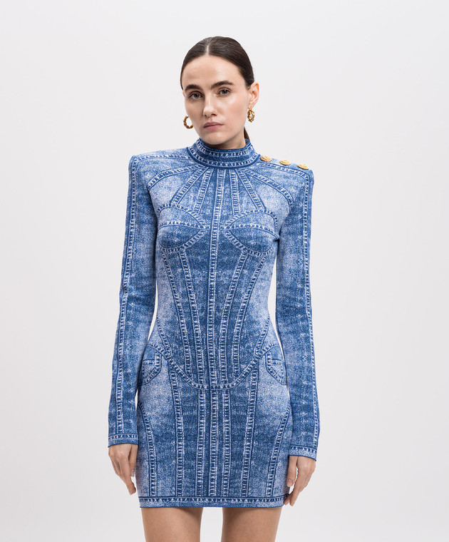 Синя сукня-футляр міні в жакардовий візерунок