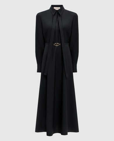 Синя сукня міді з вовни та шовку