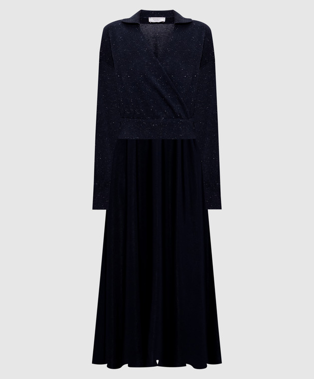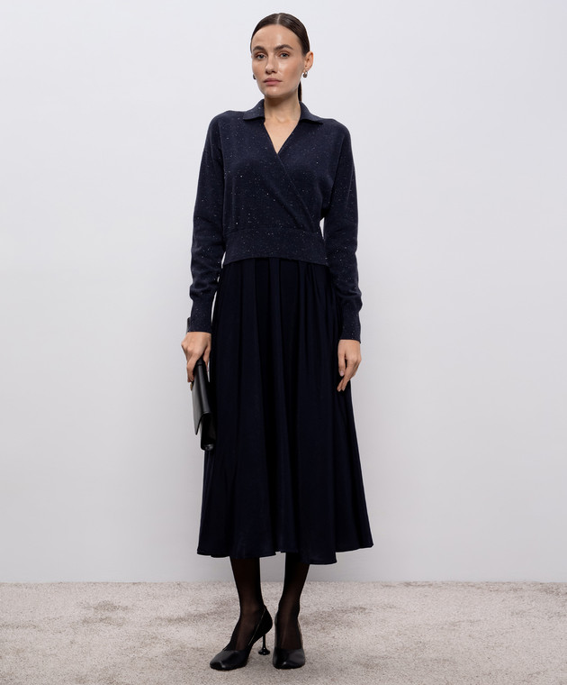 Синя сукня міді з вовною та шовком подвійної конструкції