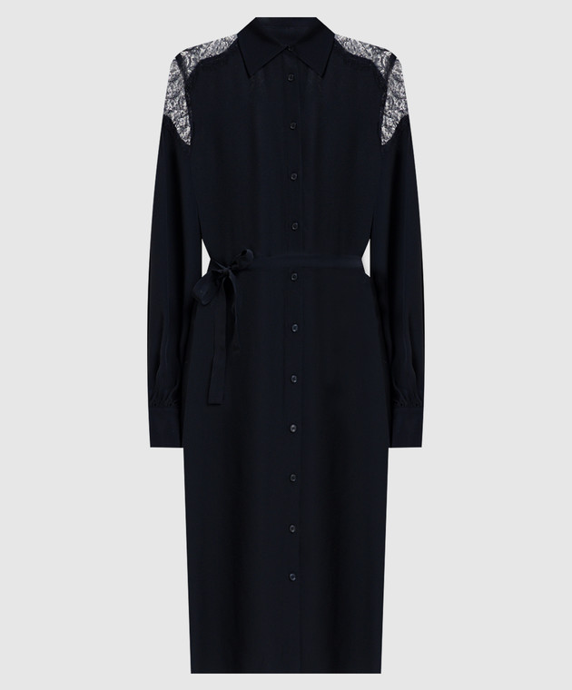 Синя сукня-сорочка з мереживом