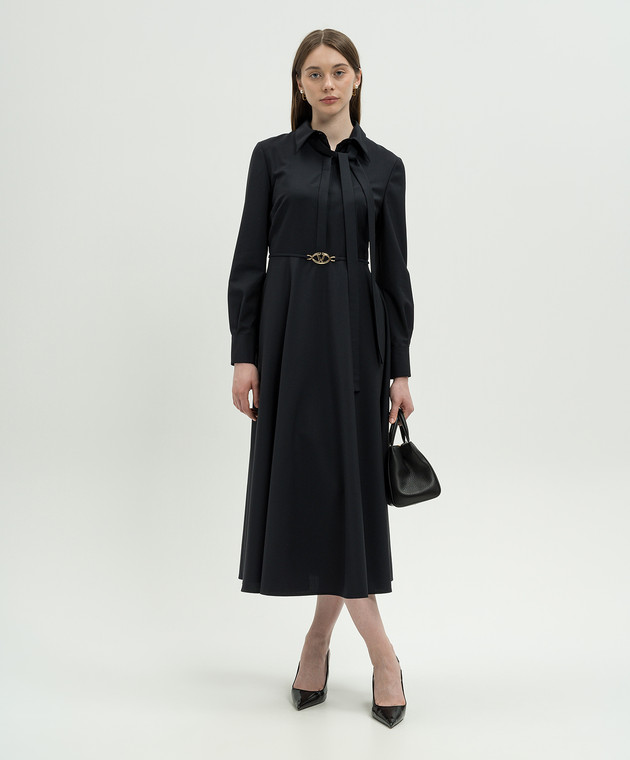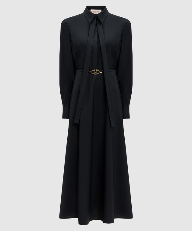 Синя сукня з вовною з логотипом VLogo Signature